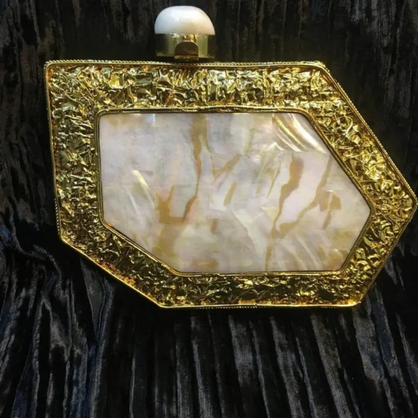Brass Clutch with MOP Inlay – Luxury Mother of Pearl and Agate Inlay Brass Clutch Purse