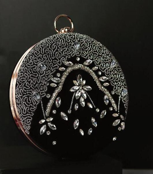 Elevate your look with our Luxury Black Embroidered Clutch. Handcrafted with intricate golden sequin and beadwork in a leafy pattern, this stunning clutch is the perfect accessory for weddings, parties, and festive occasions. Designed for brides, bridesmaids, and party-goers alike, it offers elegance, sophistication, and style.