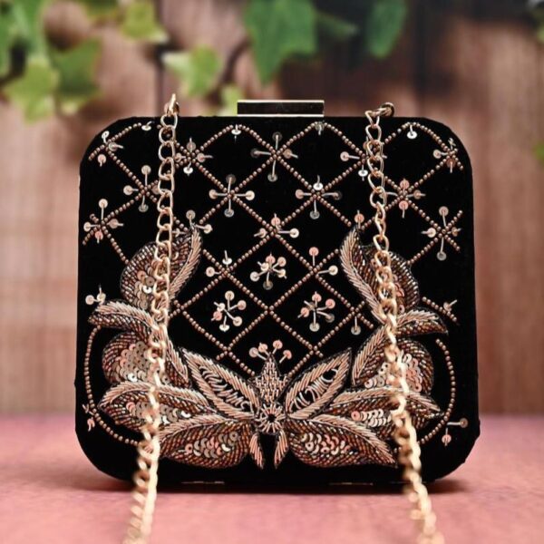 Elegant Embroidered Boxes Clutch with Chain Sling Inside