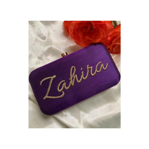 ₹1,090.00Embroidered Box Clutch: Premium Poly Satin Fabric, Detachable Chain, 8×4 inches
