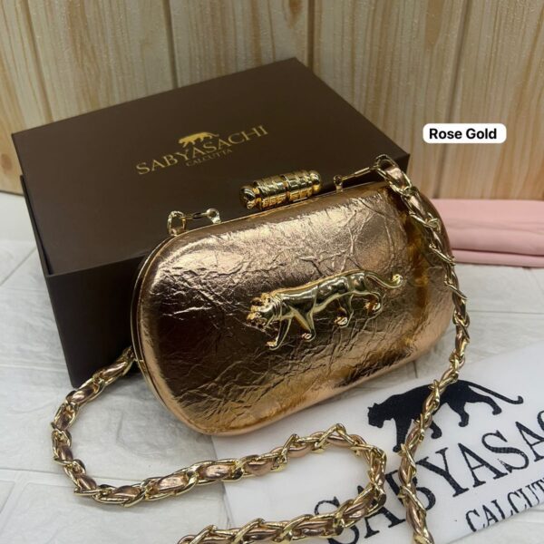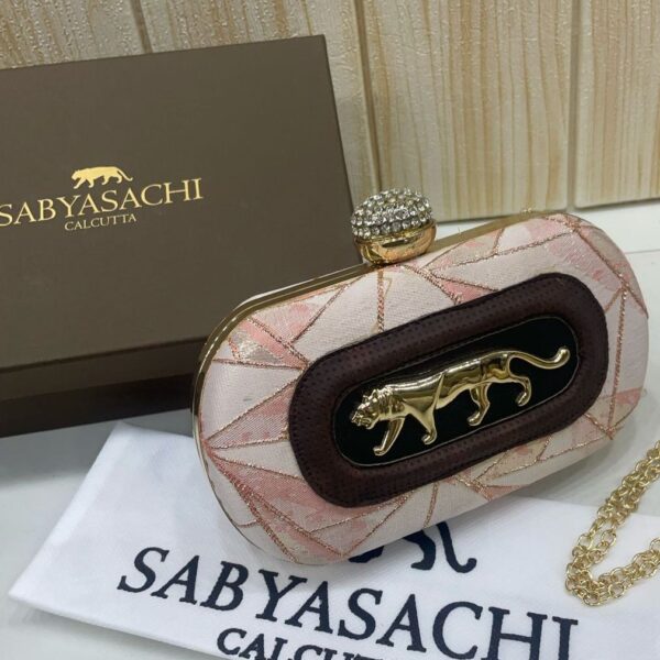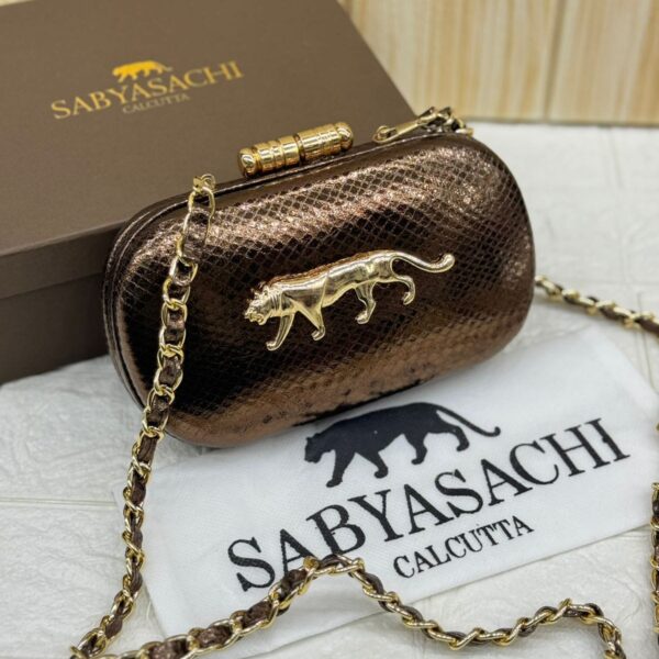Exquisite Sabyasachi Clutch – Luxury PU Leather Handbag with Metal Chain