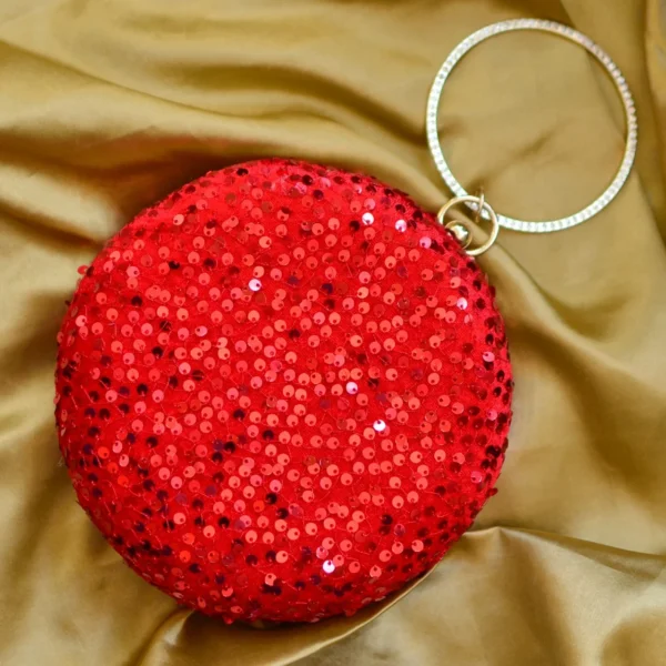 ₹1,400.00Elegant Red Sequin Embroidered Round Clutch with Sling Chain & Hand Ring