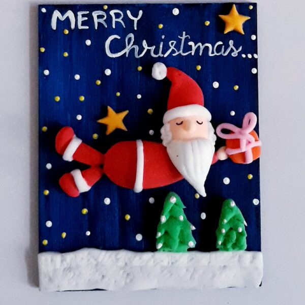 Fridge magnets on pinewood base with clay work