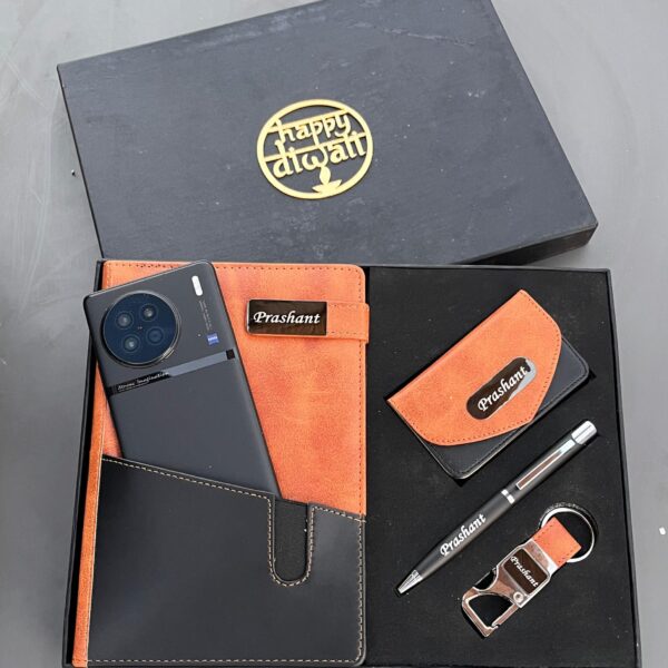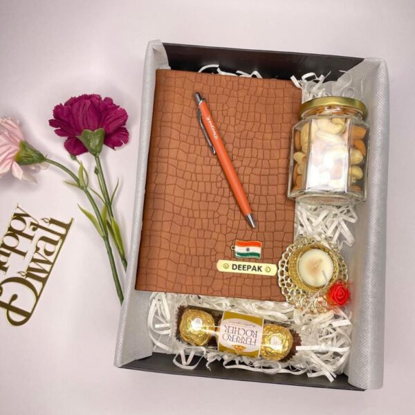 Customizable Diwali Gift Set 4.0 – Premium Diary, Metal Pen, Keychain & Topper