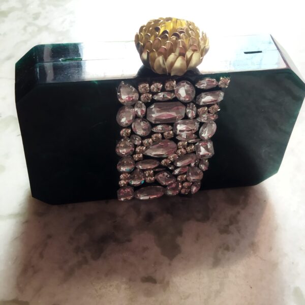 The green color clutch is a perfect accessory for your evening function. It's perfectly handcrafted & glossy finish.