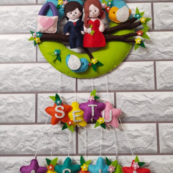 Make your wedding truly special with our Customized Bridal Hanging. Crafted from high-quality felt material and measuring 10" x 20", this piece adds a personalized touch to your decor. Customize it with two names and two characters, creating a unique and meaningful keepsake. The meticulous craftsmanship, coupled with an 8-day making time, ensures a flawless and personalized creation. Whether it's adorning your wedding venue or serving as a heartfelt gift, this hanging captures the essence of your special day.