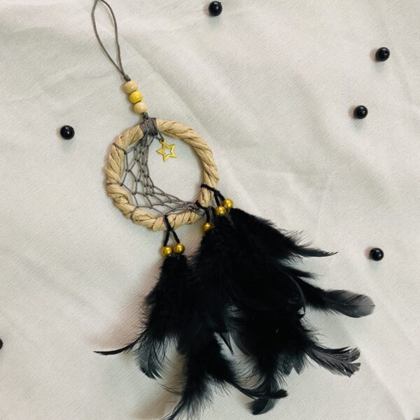 It’s a black combination of mini moon dreamcatcher for car and workspace decor