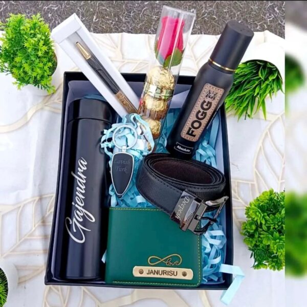 Make this Diwali unforgettable with our exquisite hamper, including a customized men's wallet, a set of delicious chocolates, a premium Cross pen, and other delightful surprises, all beautifully presented in a fancy white box.