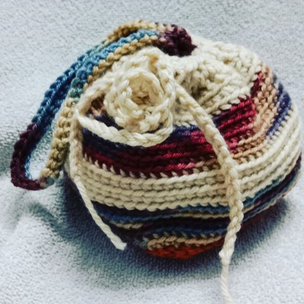 - Grab and go this trendy, handmade crochet drawstring potli, complete with handles. The shape is eye-catching and unique, but still big enough to hold everything you need.