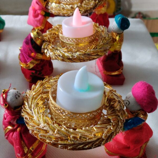 Bring home the vibrance of Rajasthani tradition with these handcrafted Puppet Tealight Candle Holders. Designed as colorful Kathputli puppets, they are perfect for enhancing Diwali, pooja, or festive decorations. Their artistic craftsmanship makes them an ideal choice for home décor and thoughtful gifting for birthdays, housewarmings, or festivals like Diwali and Christmas.