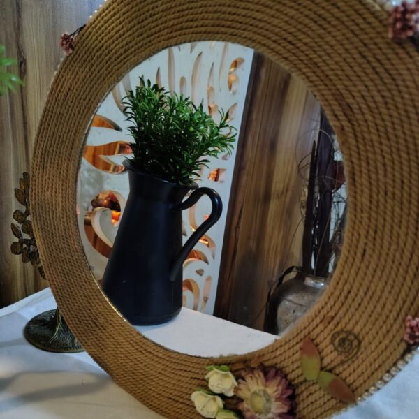 Bring boho elegance into your space with this Handmade Jute Rope Mirror, a 12-inch round mirror featuring a natural jute rope design with an added rose pattern. This decorative mirror is perfect for bedrooms, living rooms, vanity areas, or cozy corners, adding warmth and texture to any setting. Its lightweight yet durable construction ensures easy hanging, while the handcrafted details make each piece unique. Whether used as a statement décor item or a practical mirror, it’s a must-have for bohemian and rustic-inspired interiors. Order now and elevate your space with this earthy, artistic piece!