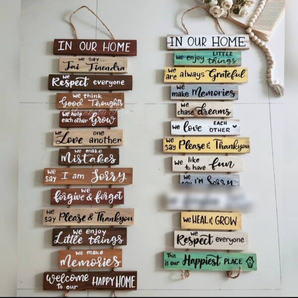 Elevate the aesthetics of your home with our MDF wooden hanging house rules. Crafted from high-quality materials, these stylish wall decorations add a touch of elegance to any space. Enhance the ambiance of your living environment and express your personal style with our attractive and functional house rules, available now at Zupppy.