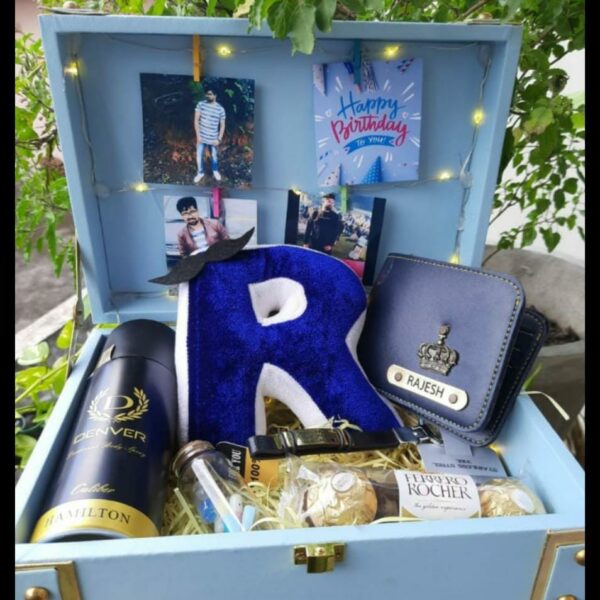 Indulge in luxury with our Premium Hamper, perfect for weddings, corporate gifts, or special occasions. This exquisite hamper includes a black leather trunk, customized wallet, copper pen, flask, and delicious Twix chocolate. Personalized with custom photos and coin topper, each item is thoughtfully curated for a memorable experience. Dispatched on the 3rd working day, this hamper is sure to impress with its elegance and refinement. Order now and elevate your gifting to a new level of luxury.