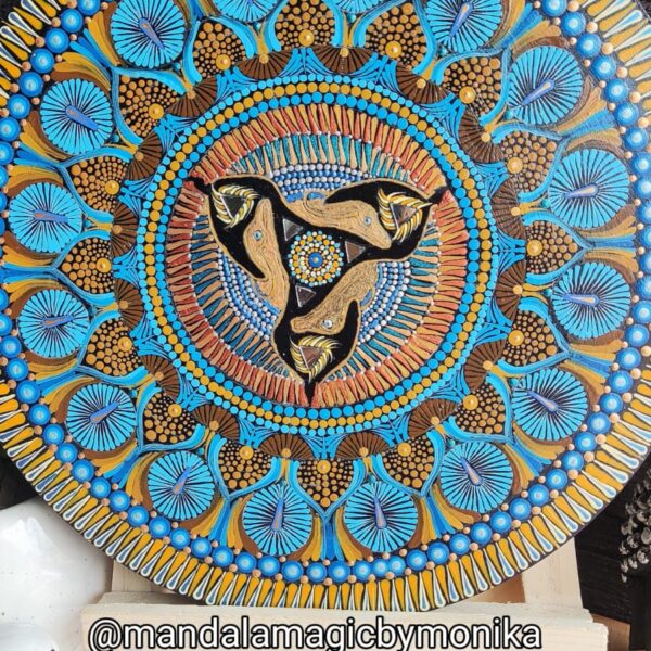 Enhance your home decor with the Japanese Kemon Bird Design Blue Mandala Art. This handcrafted wall decor features a stunning dot mandala pattern in rich blue hues, perfect for adding elegance and tranquility to any space. Ideal for living rooms, bedrooms, and offices.