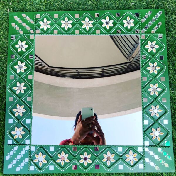 Enhance your home decor with our Lippan Mirror Art, featuring traditional mud art and a beautiful mandala design. Handcrafted by skilled artisans, this square mirror adds a touch of cultural elegance to any room.