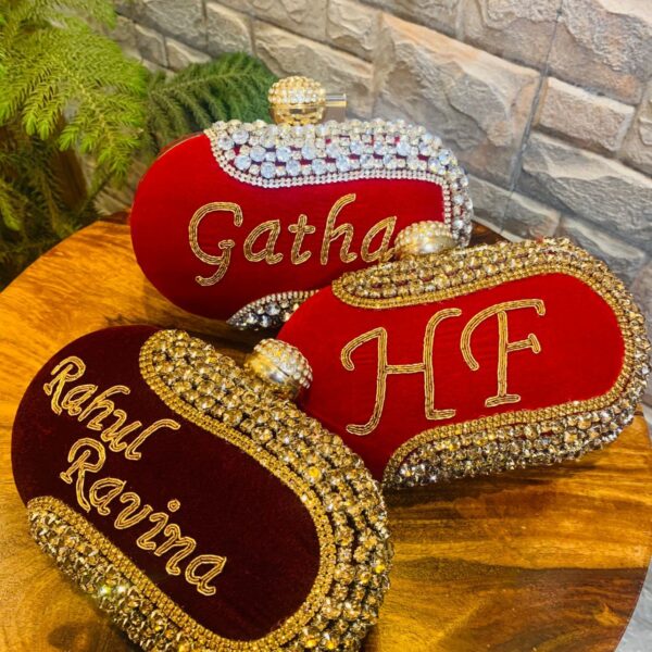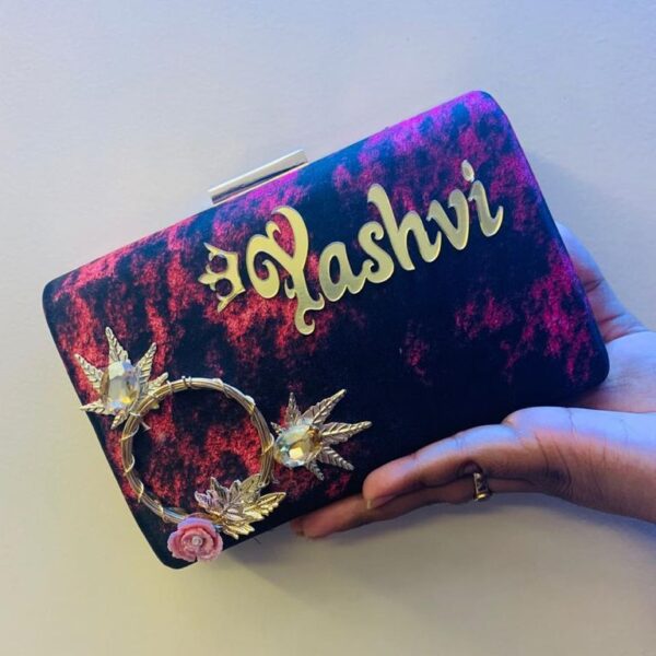 Name customised Oval clutch with designer knob