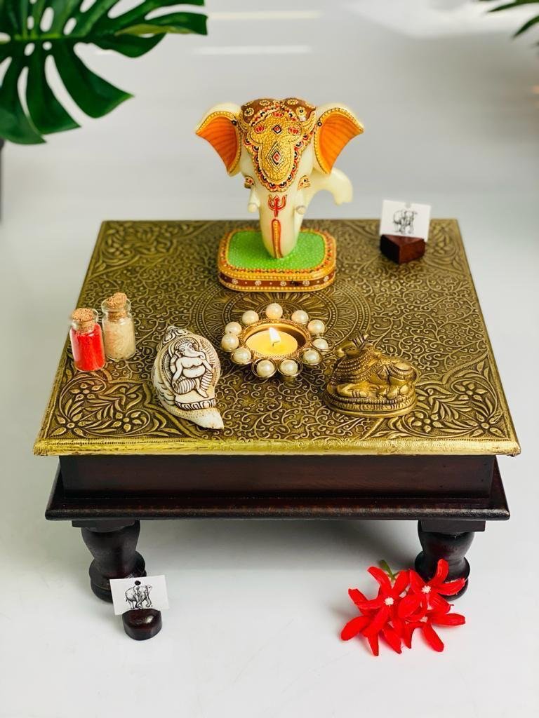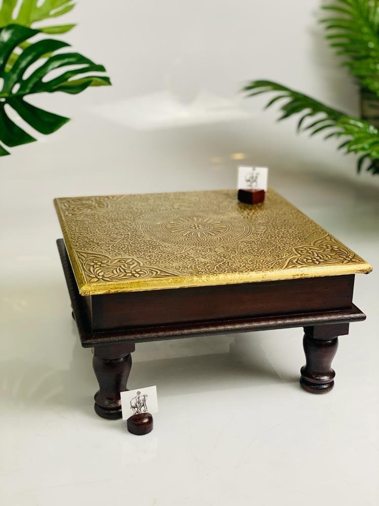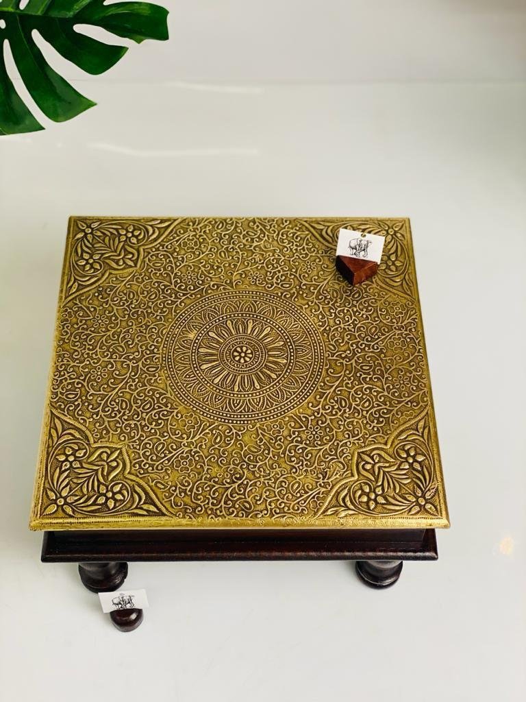 Now enhance your living space with elegance and sophistication with this beautiful brass artwork wooden chowki for your home or office