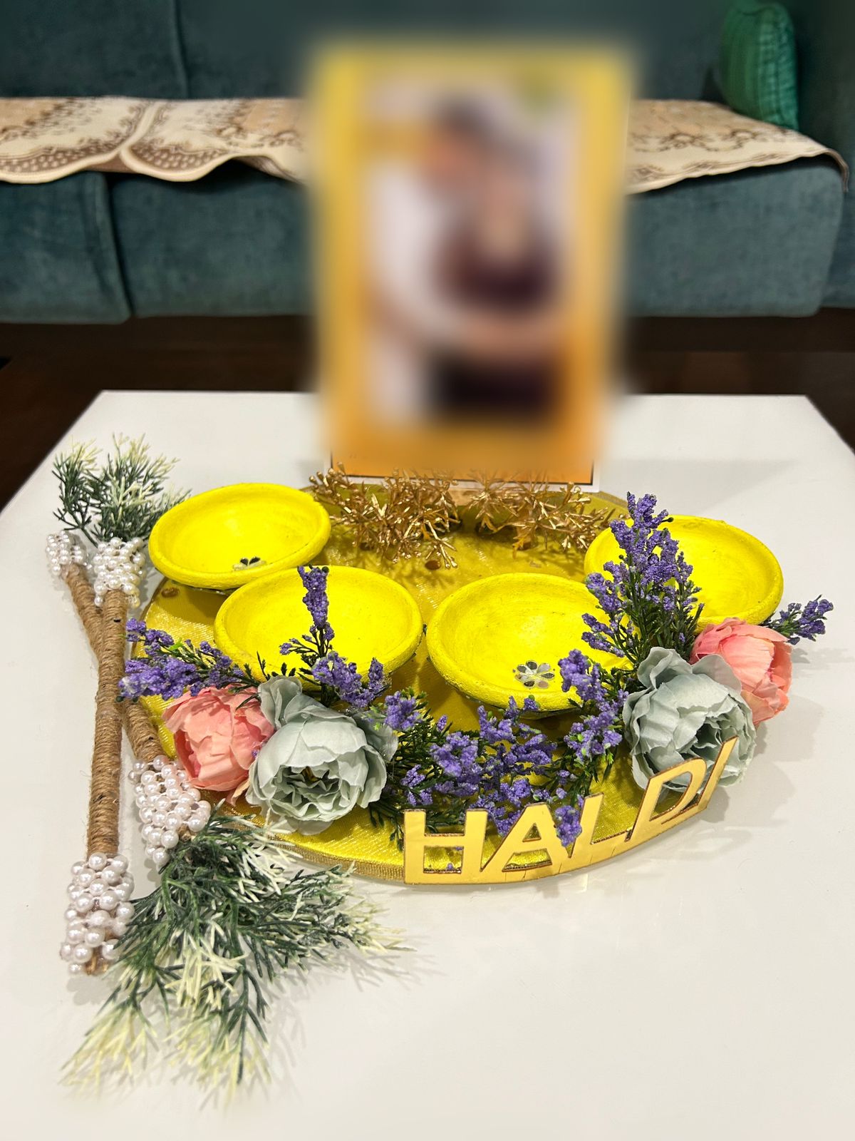 Elevate your Haldi ceremony with our exquisite Decorative Customised Platter, meticulously crafted to add charm and elegance to your special day. Handpicked with care, this stunning platter features a curated selection of vibrant turmeric, fragrant flowers, and ornate decorations, symbolizing prosperity and joy. Each element is thoughtfully arranged to create a visual masterpiece, reflecting the beauty of tradition and celebration. Whether it’s a wedding, engagement, or any auspicious occasion, our bespoke platter is sure to impress and create lasting memories. Make your Haldi ceremony unforgettable with our Decorative Customised Platter, a true embodiment of love and culture.