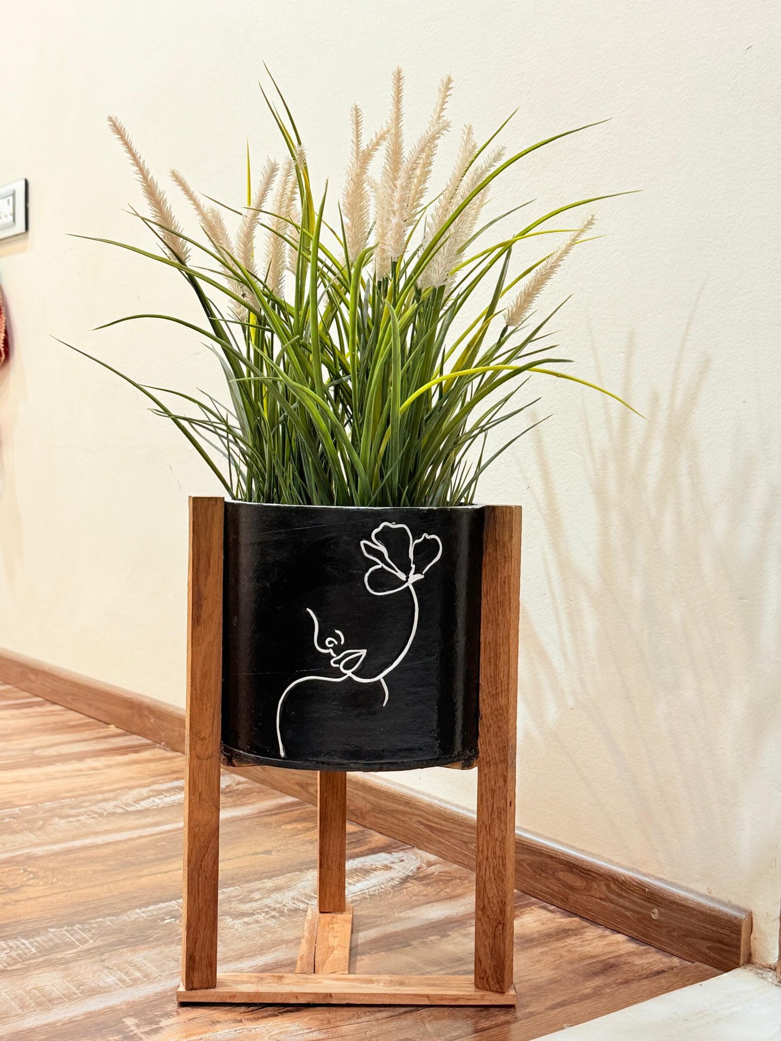 Add a refreshing touch of elegance and creativity to your interiors with this handcrafted decorative planter, designed to bring both style and sustainability to your space. Meticulously crafted from high-quality cardboard, this planter showcases a beautiful clay art design on its front, lending it a unique artistic appeal that complements modern as well as traditional decor themes. It sits gracefully in a sturdy wooden stand, which enhances its overall stability while adding a warm, natural tone to your interior setup.