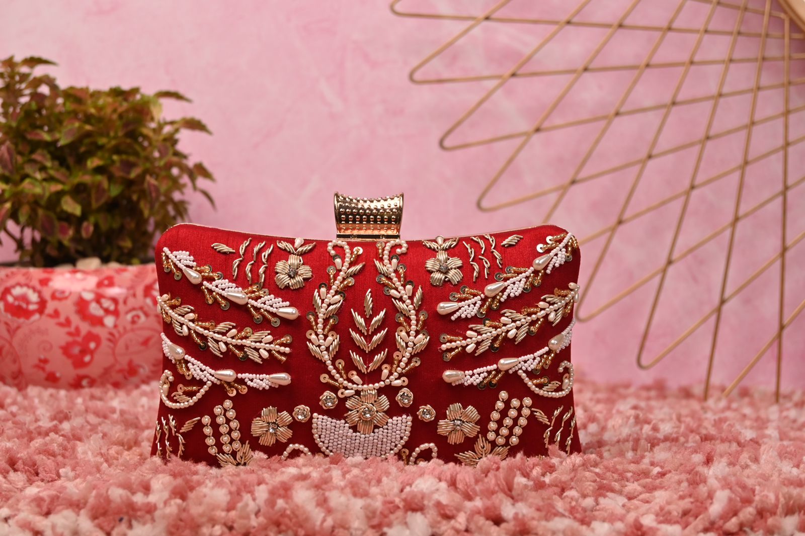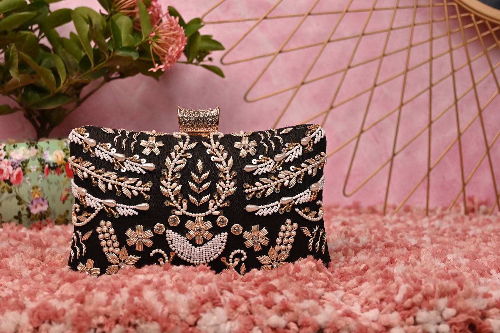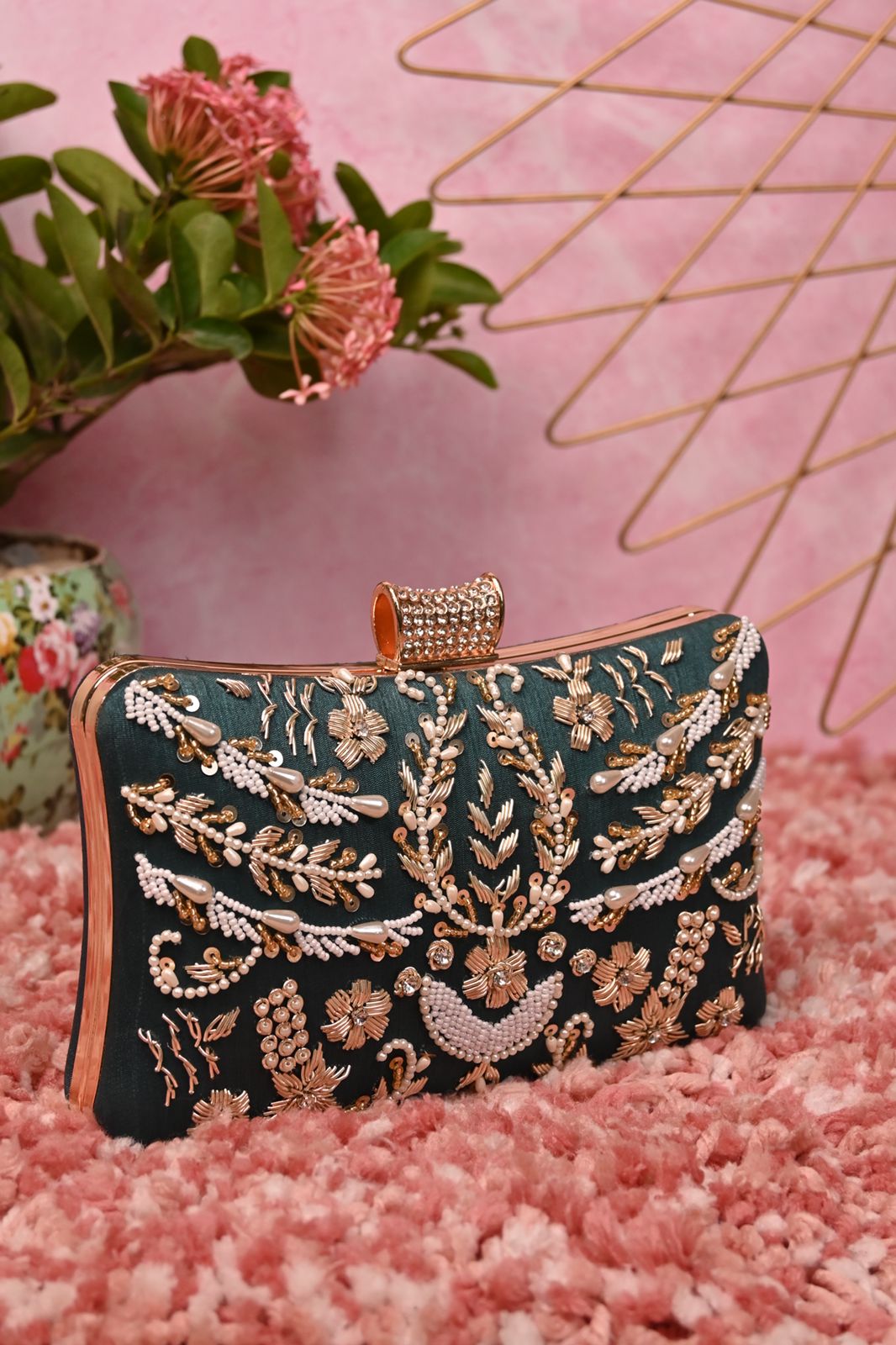 Designer embroidery clutch