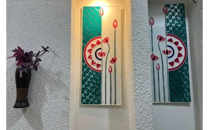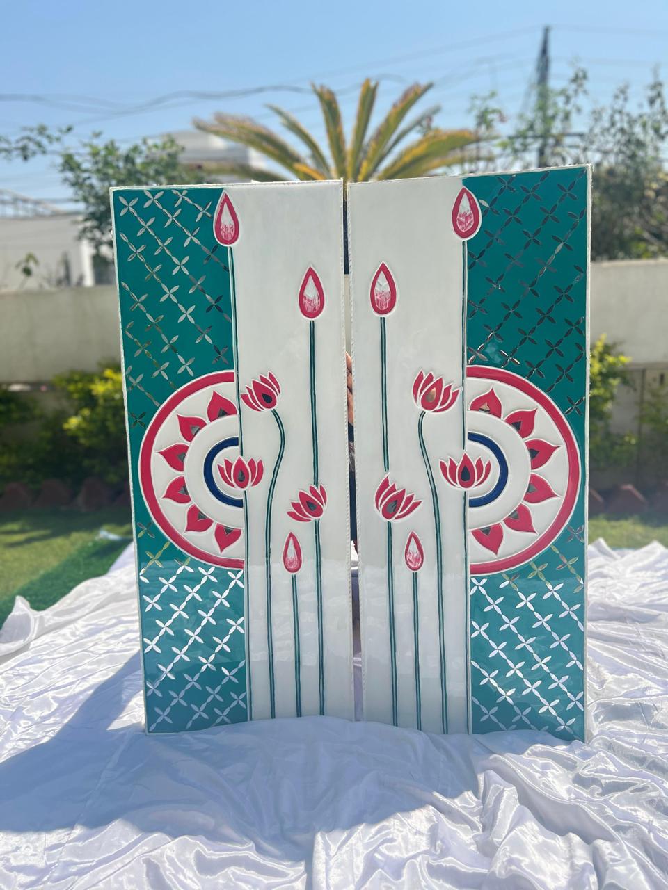 Elevate your interiors with the Handcrafted Pichwai-Inspired Lippan Art Wall Hanging (Set of 2). Designed with intricate peacock and floral patterns, each piece features a glossy resin coating that enhances color, texture, and durability — perfect for living rooms, corridors, or festive décor.