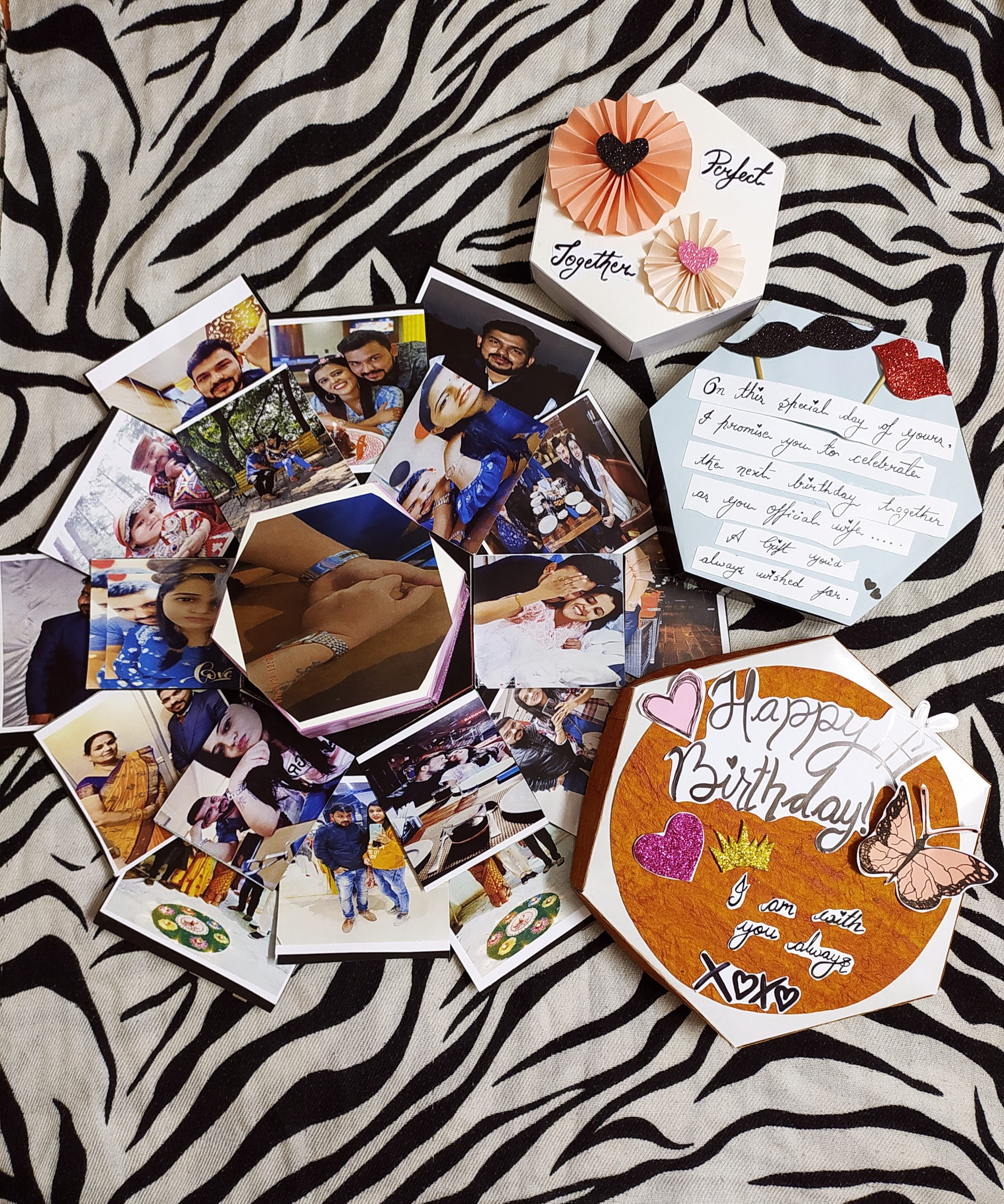 4 layered box with pics n chocolate or any gifts inside it…👌😍