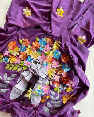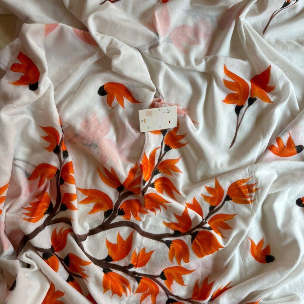 Mulmul Cotton Hand Painted Sarees | Lightweight & Artistic Handcrafted Drapes