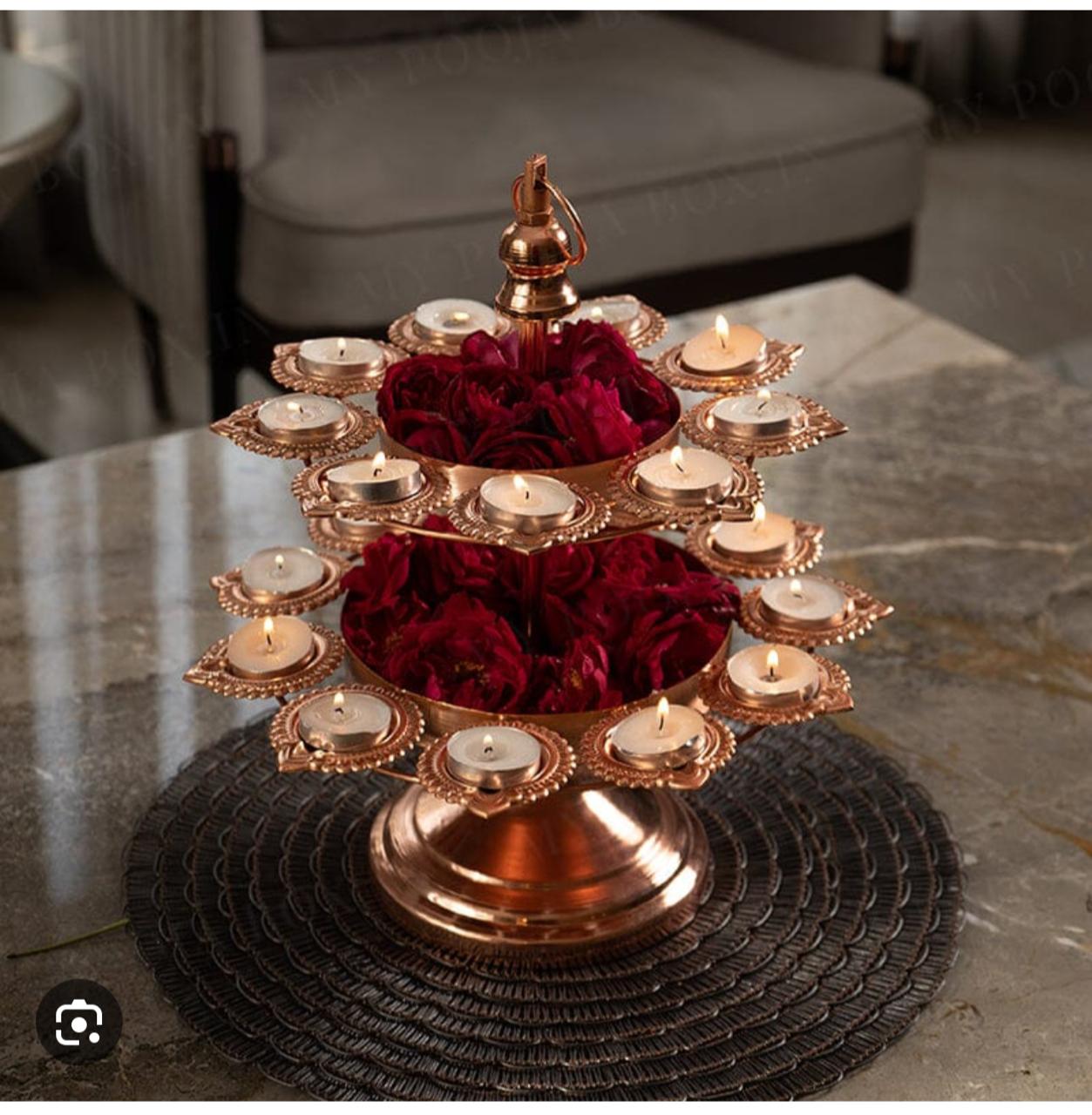 The multi-layer diya urli stand is a beautiful and practical way to display diyas, or oil lamps, during festivals and special occasions. It consists of multiple layers arranged in a stand, allowing you to place several diyas at different heights. Made with sturdy materials, it provides stability and ensures safety while lighting diyas. Whether it’s for Diwali, weddings, or other celebrations, this stand adds elegance and charm to your decorations. You can place it on tables, mantles, or even on the floor to create a stunning focal point in your home. With its intricate design and ability to hold multiple diyas, it brings a warm and inviting ambiance to any space. Elevate your festive decor with the multi-layer diya urli stand, making your celebrations even more memorable and beautiful.