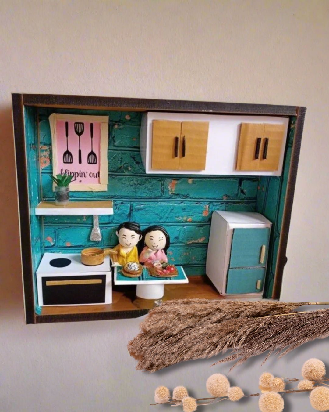 Rainvas Kitchen Couple Miniature Shadow Box Frame: Love Cooking Together
