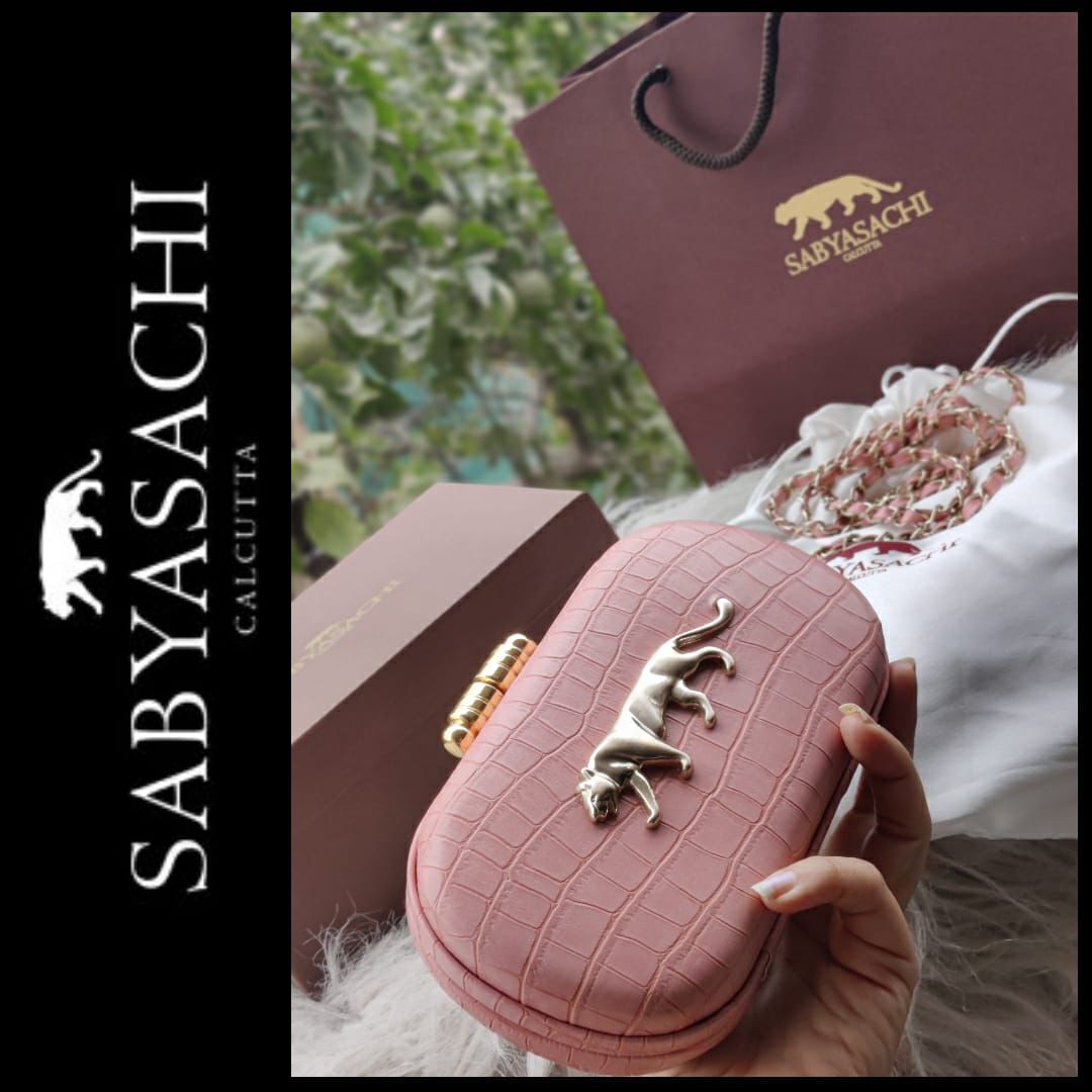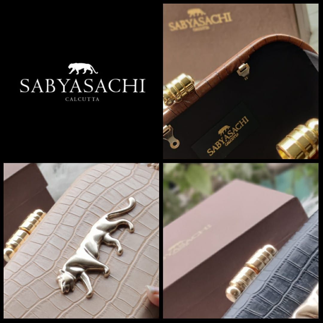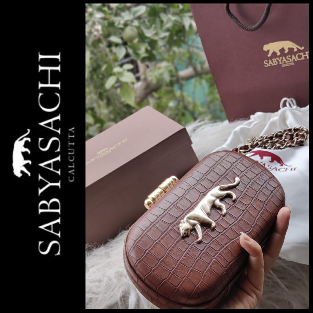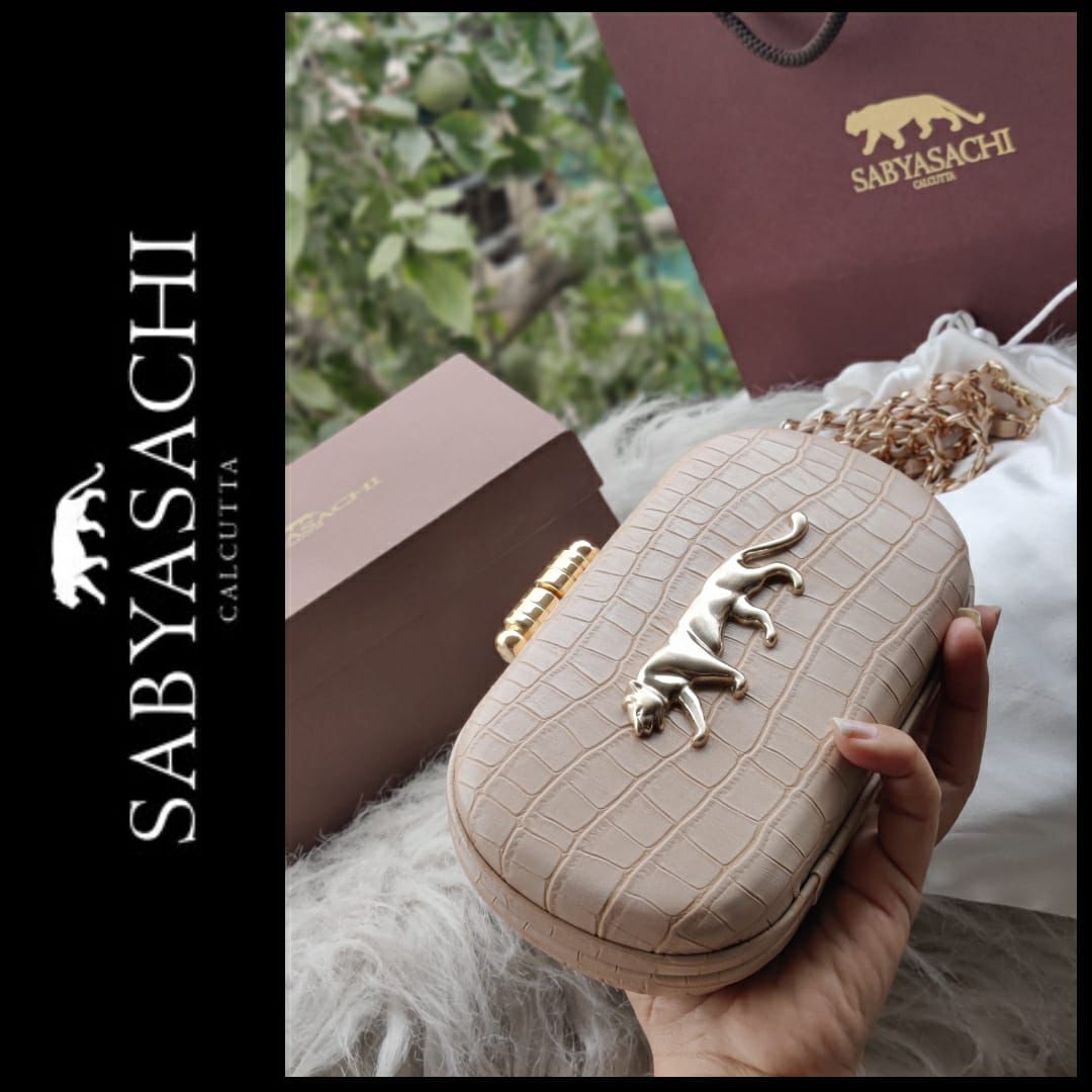 Sabyasachi Croco Finish Clutch – Designer Bag with Detachable Belt & Original Packaging