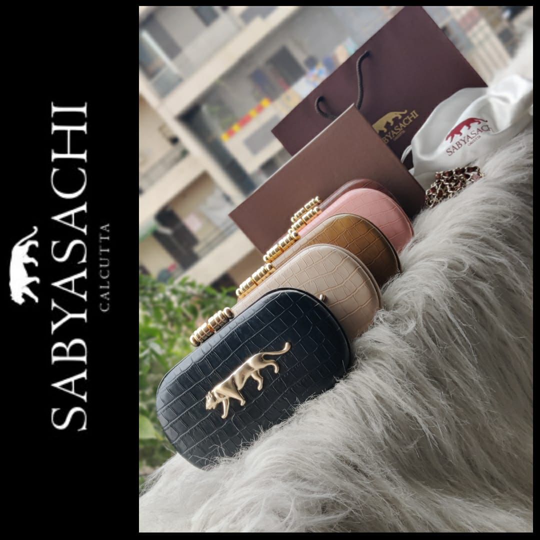 Step into luxury with the Sabyasachi Croco Finish Clutch, a designer bag that exudes elegance and style. Made from high-quality croco-textured faux leather, this clutch is a statement piece for every fashionista. It comes with a detachable belt, offering the option to use it as a clutch or a crossbody bag. Packaged in its original box with a carry bag and dust bag, this clutch is the epitome of sophistication and convenience. Whether for a special occasion or daily wear, this stylish bag is the perfect addition to your wardrobe. Available now—shop your designer clutch today!