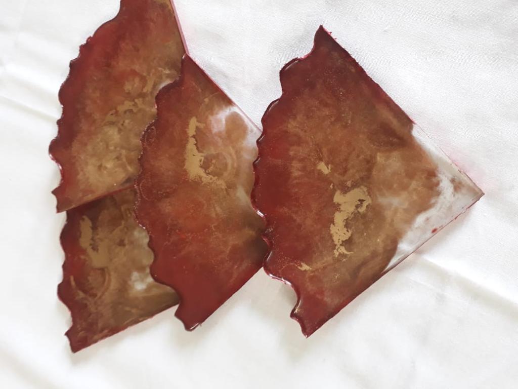 Introducing our Triangle Resin Coaster: a stunning blend of form and function for your home. Crafted with precision, these coasters feature a unique triangular shape that adds a touch of modern sophistication to your living space. Made from high-quality resin, each coaster boasts a mesmerizing swirl of vibrant colors and intricate patterns, making it a visual delight. The smooth and glossy surface not only protects your tabletops from unsightly stains and condensation but also adds a touch of elegance to your decor. With its non-slip bottom, these coasters stay securely in place, providing reliable protection for your furniture. Perfect for both everyday use and special occasions, our Triangle Resin Coasters are the perfect blend of style and practicality, elevating your drinkware and adding a pop of artistry to your home.